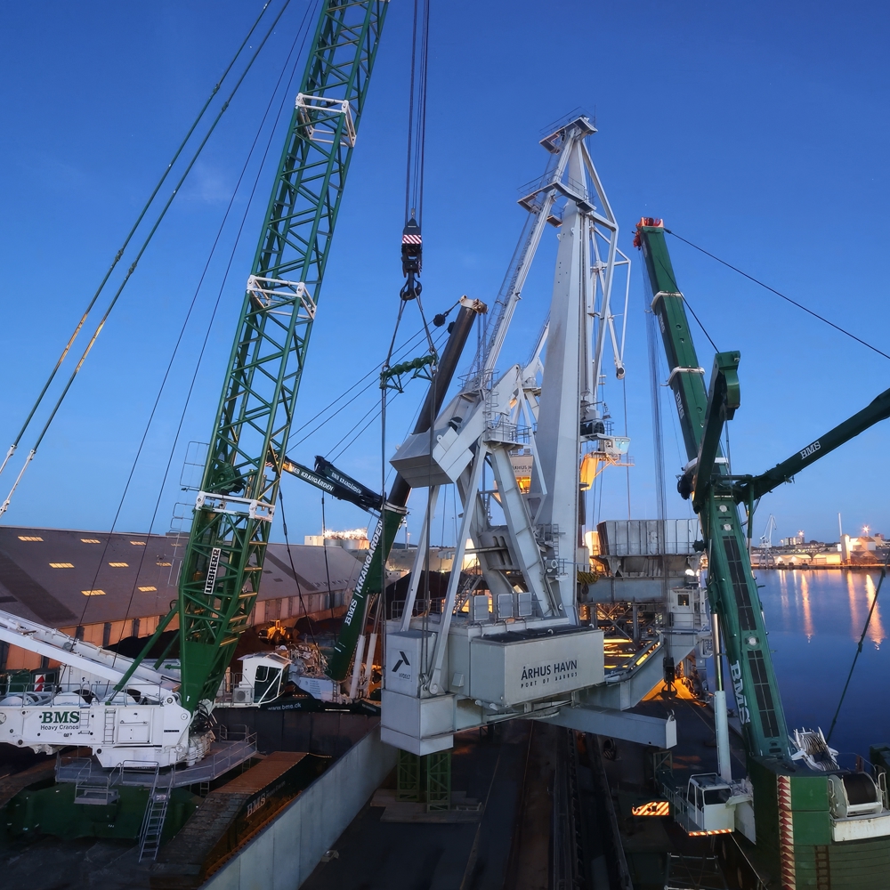 I sommeren 2024 gennemførte BMS et stort renoveringsprojekt på en af havnens bulk-kraner. For at få adgang til svingringen i midten af kranen måtte den store struktur delvist demonteres. Flere løsninger blev overvejet, og det blev besluttet at fjerne kranens top.