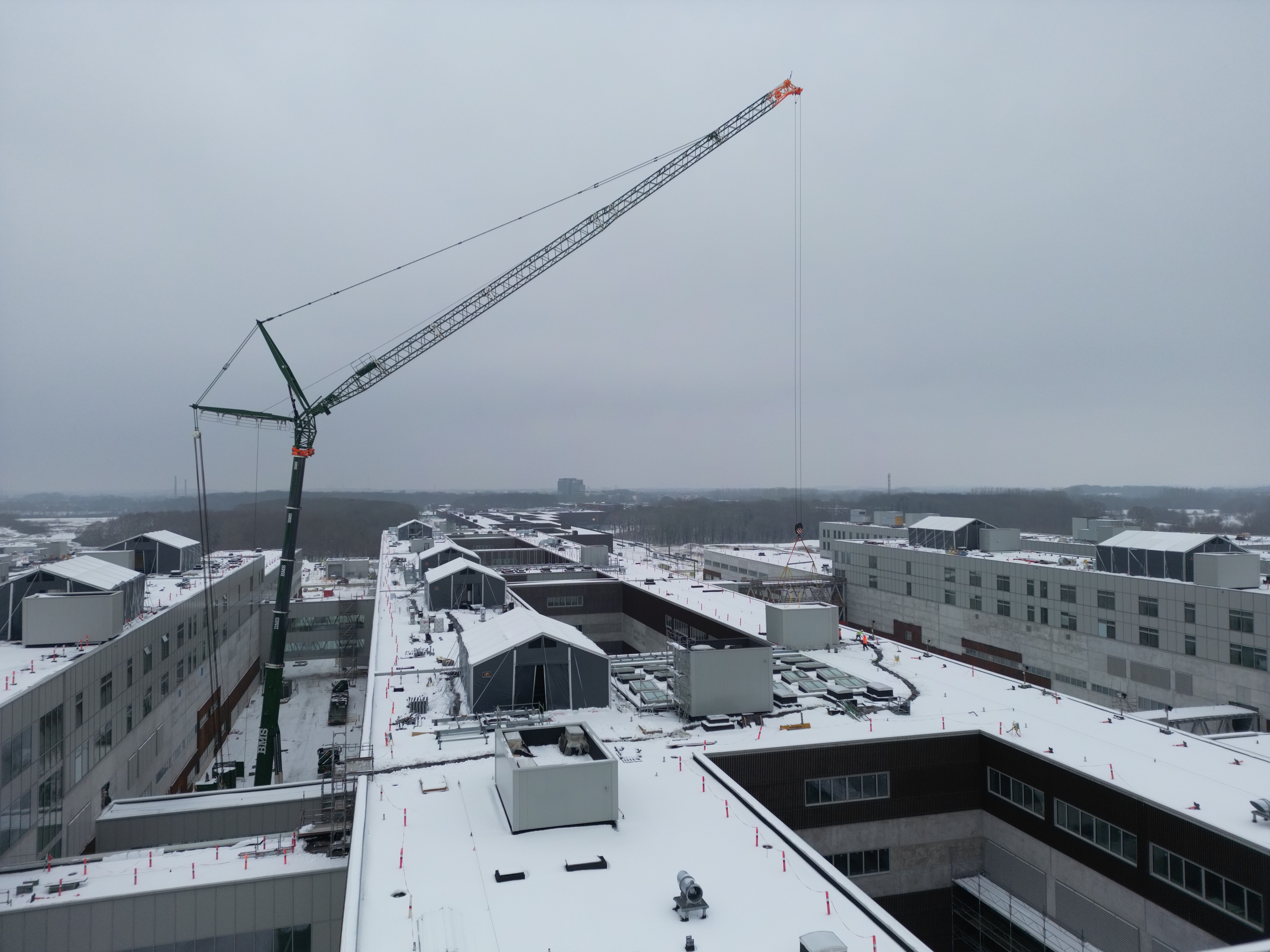 På byggeriet af Nyt OUH i Odense har montering af store roofboxes over elevatorskaktene været en særlig opgave gennem næsten halvandet år.