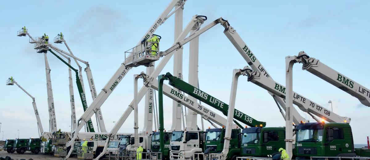 Hos BMS råder vi over en flåde på mere end 100 lastbillifte, hvilket giver vores kunder en høj grad af leveringssikkerhed. Med et bredt udvalg af lifte, der spænder fra 45 til 90 meter, tilbyder vi fleksible og pålidelige løsninger til arbejde i højden – uanset opgavens omfang eller kompleksitet.