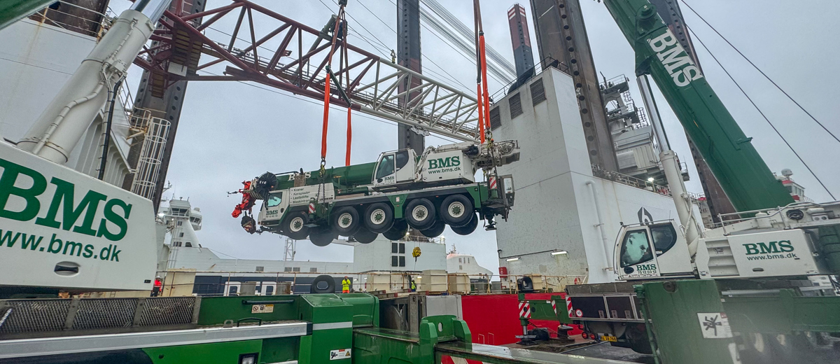 To ensure smooth operations on board, we have hoisted our 130-ton LTM1130-5.1 mobile crane, known as BODIL, onto the ship's deck. Wind Discovery’s own crane is out of service, making additional capacity necessary both on the quay and on board the vessel. With a lifting height of up to 91 meters and a reach of 72 meters, Bodil is a powerful and flexible solution for the task.