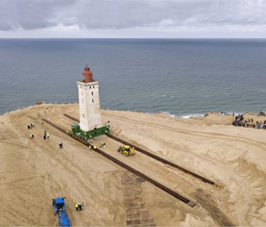 700 tons Rubjerg Knude Fyr flyttet med donkraft og skinne