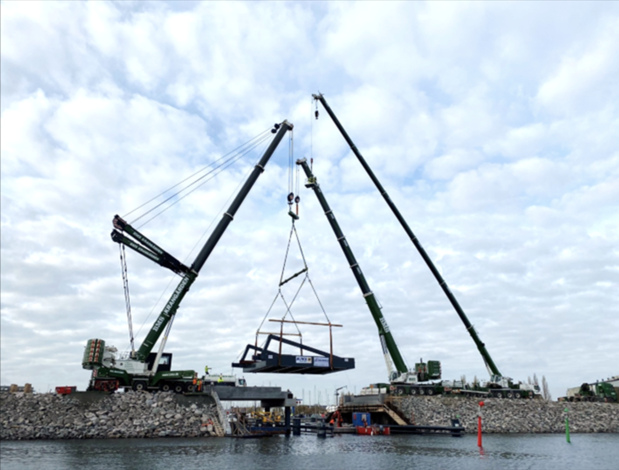 Under selve løftet blev kranopsætningen ændret fra enkeltløft til tandemløft. Denne fleksible tilgang gjorde det muligt at anvende mindre kraner og minimere forberedelserne på pladsen, hvilket resulterede i en betydeligt mere omkostningseffektiv løsning end det oprindeligt planlagte løft med én stor kran.