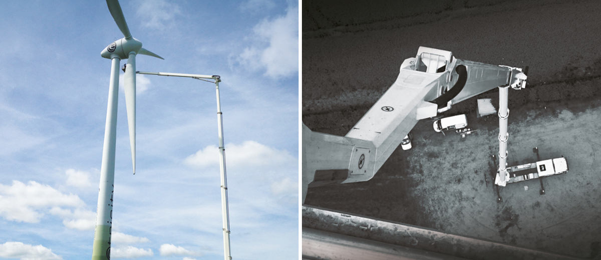Da møllerne her har en navhøjde på 84 meter, og rotorerne har en diameter på 82 meter, var den 90 meter lange lift fra BMS den perfekte løsning til at udføre opgaven mest effektivt.