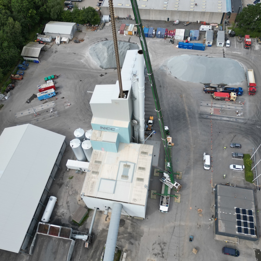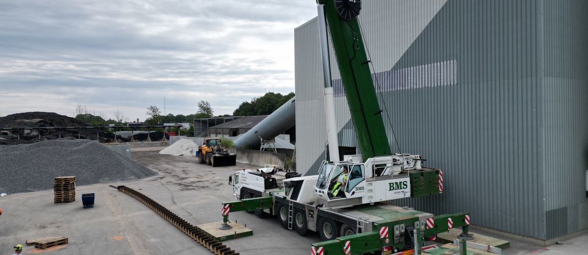 Med hele 80 m hoved boom var der lige præcis kun 1 meter tilbage, da kæden på NCC Ejby Asfaltfabrik skulle skiftes.