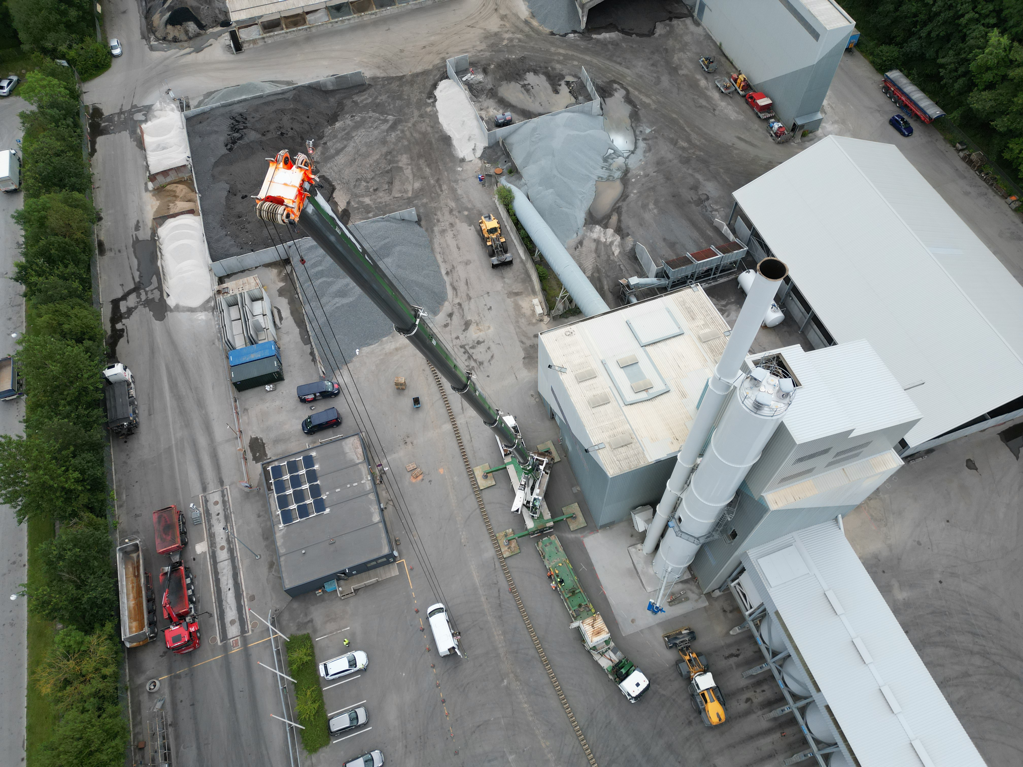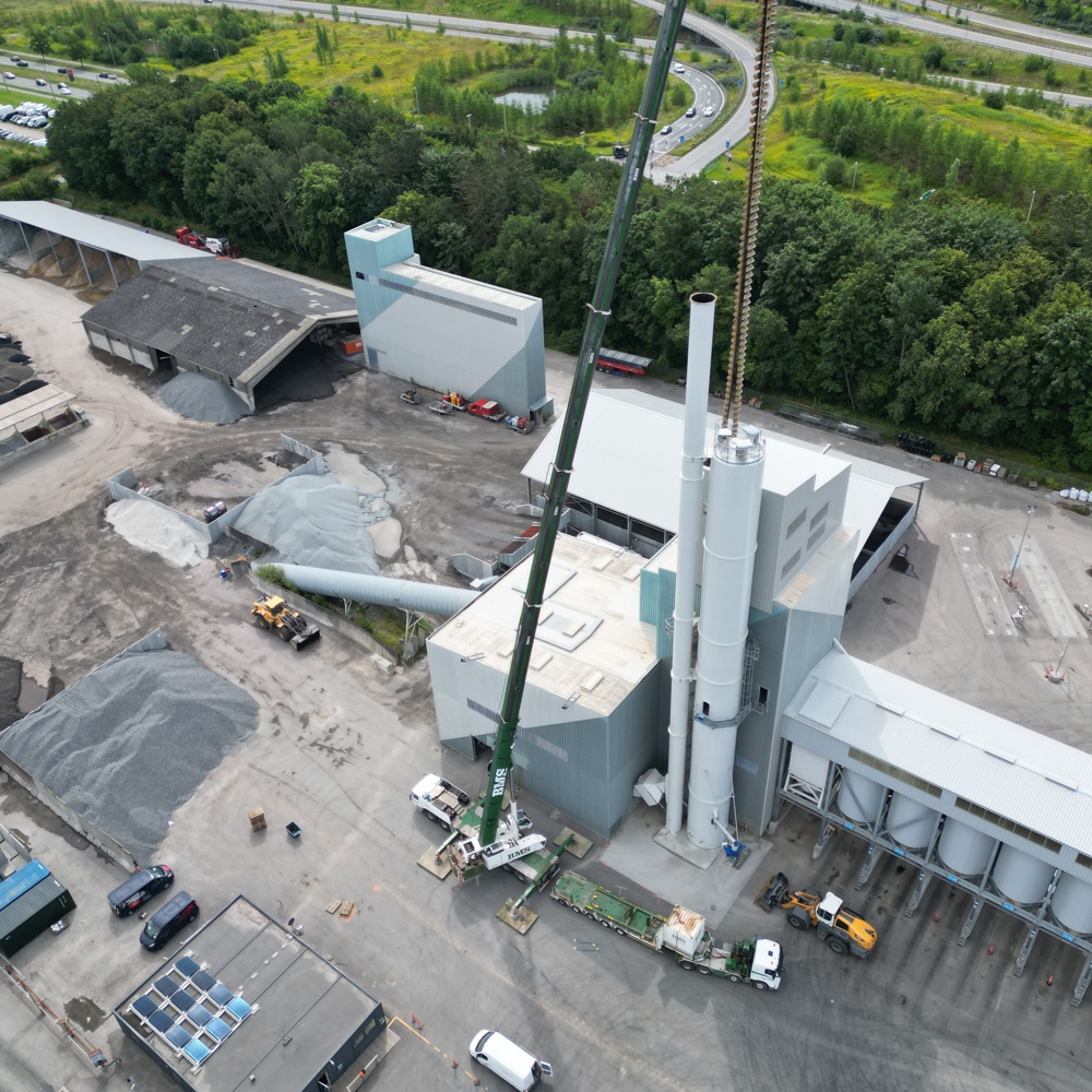 64 meter 6 tons tung kæde skiftes på Asfaltfabrik i Ejby