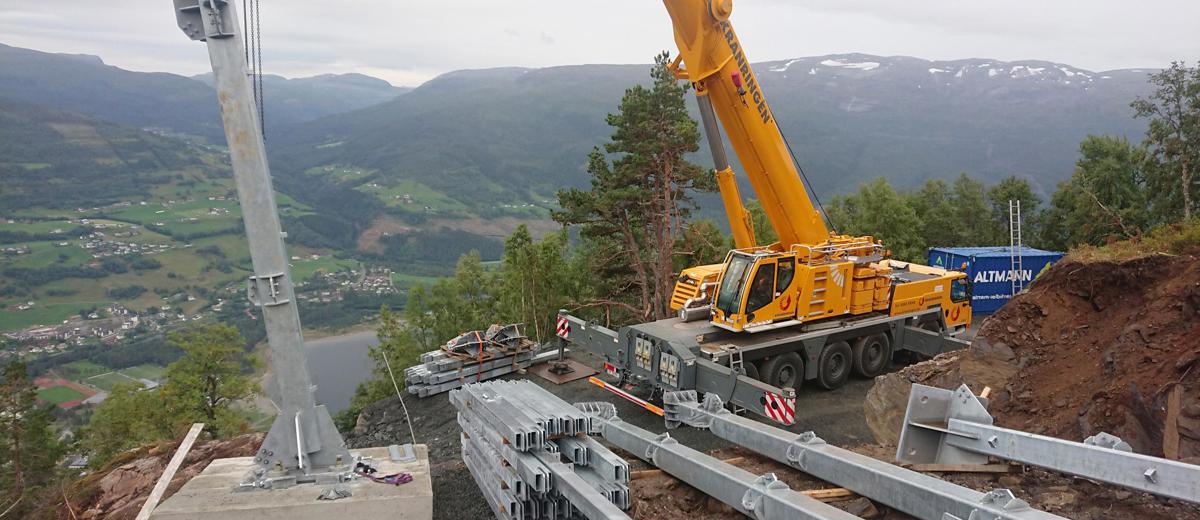 Efterfølgende har Kranringen AS brugt en 130 tons mobilkran på bjergsiden til at montere de nye støtter til kabelbanen, mens toppen af bjerget blev brugt til at installere den øverste station. På den nederste station brugte Kranringen AS en 220 tons mobilkran.