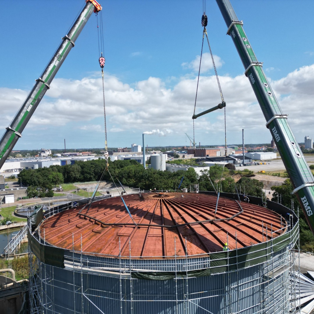 Da et ældre silotag stod for udskiftning hos Nordic Sugar Danmark i Nakskov, var der tvivl om konstruktionens holdbarhed. BMS gik derfor i samråd med ingeniører fra Nordic Sugar og efter en del beregninger og indledende møder blev det besluttet at forstærke taget inden løftet. Samtidig blev løftet foretaget med 2 kraner for at sikre bedst mulig kontrol, hvorefter løftet kunne foretages sikkert og effektivt.