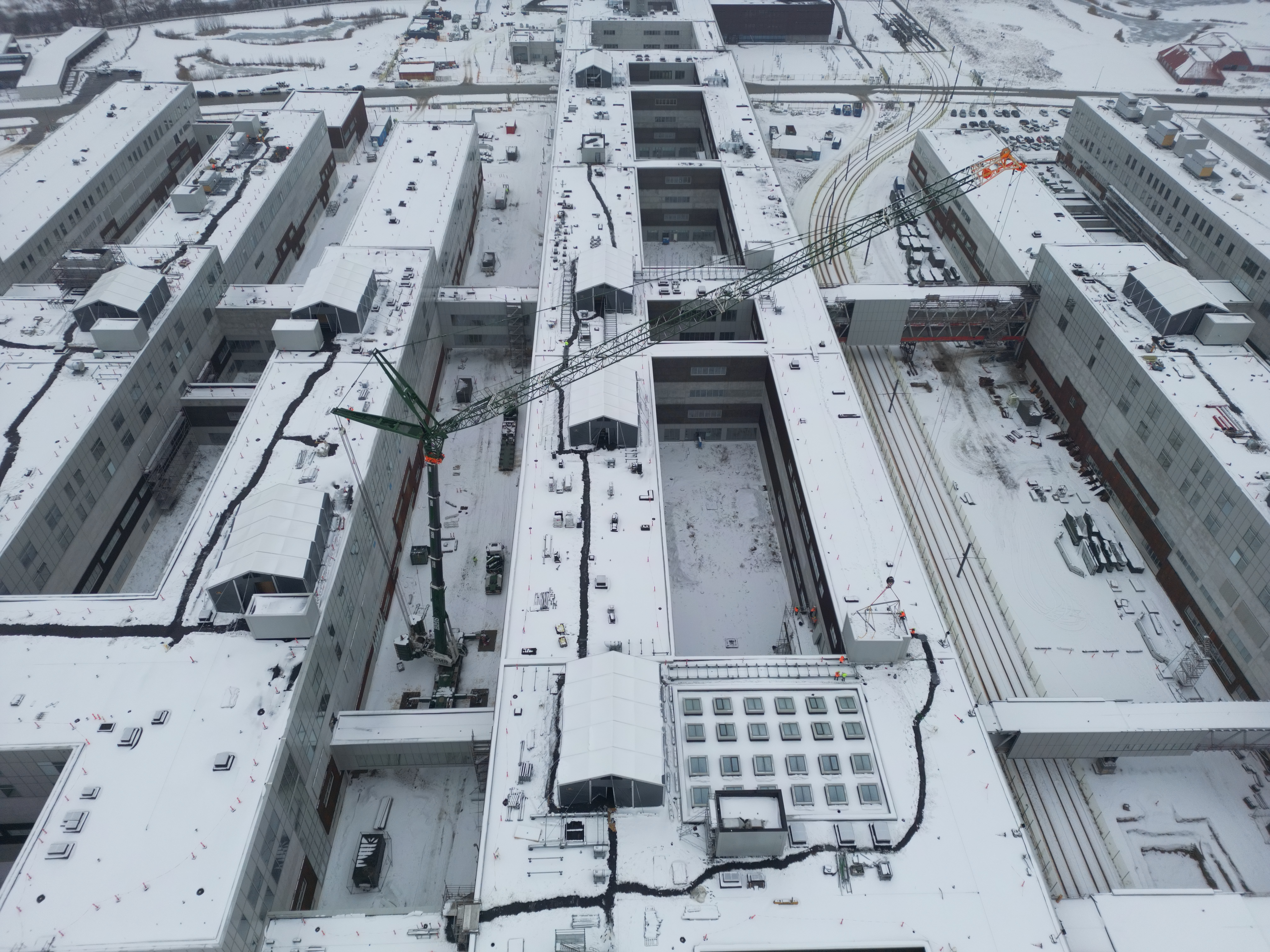 På byggeriet af Nyt OUH i Odense har montering af store roofboxes over elevatorskaktene været en særlig opgave gennem næsten halvandet år.