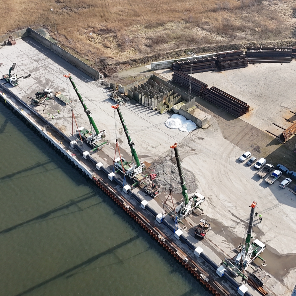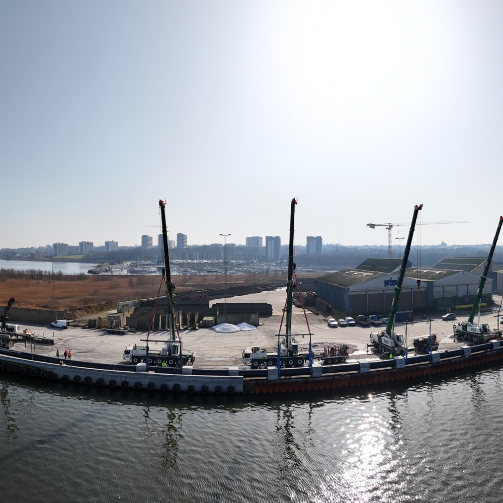 På Kolding Havn blev løftet gennemført sikkert gennem tæt samarbejde mellem kranførere og supervisor – og et setup, hvor mobilkraner og lastbilkraner arbejdede sammen om opgaven.