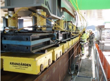 Skubning af bro fra pram til land