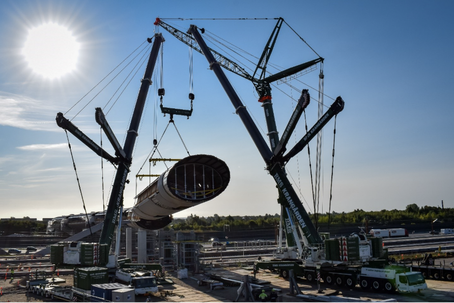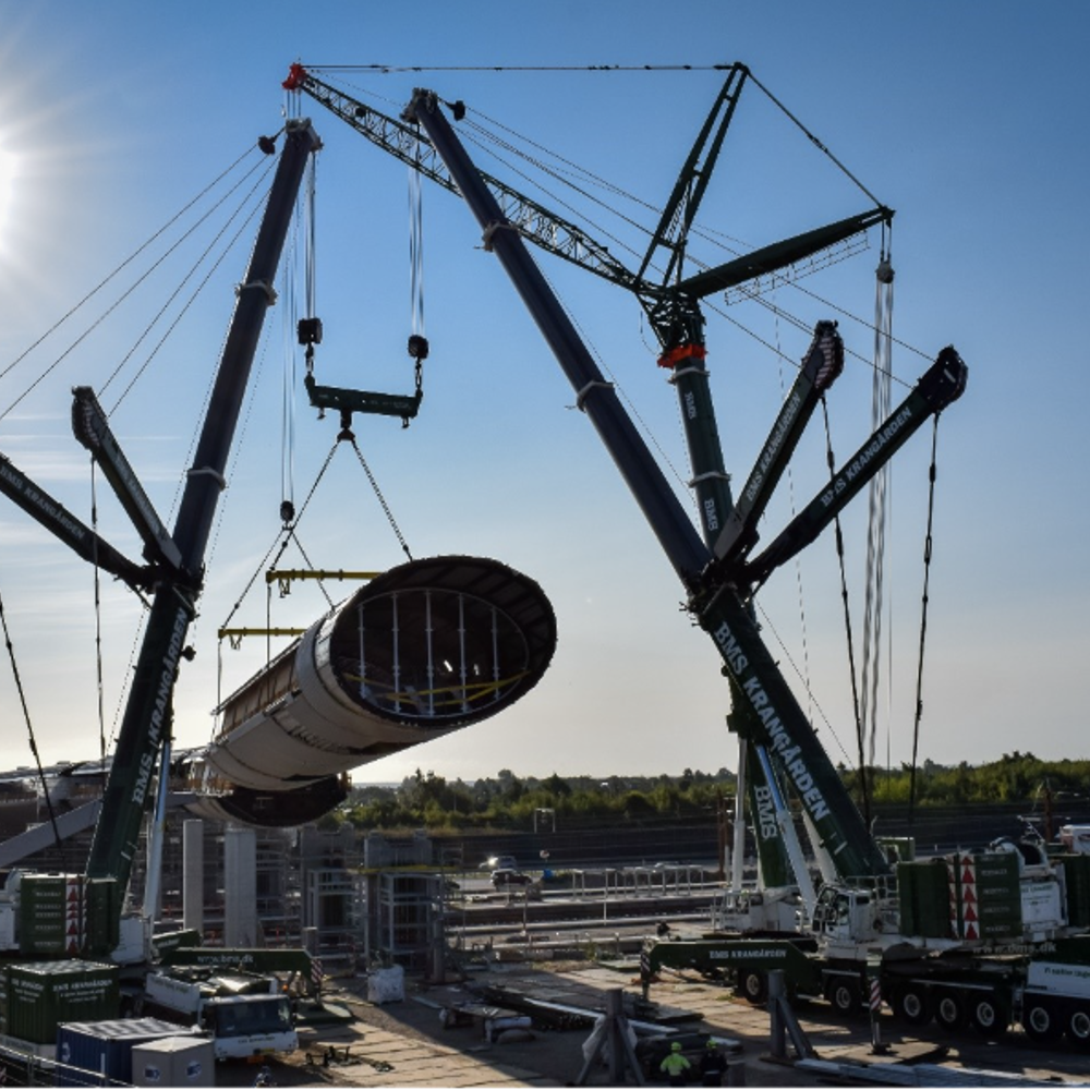 Ud over kranerne leverede BMS den store midlertidige støttekonstruktion, som blev anvendt under samlings- og svejsearbejdet af tunnelsektionerne.
