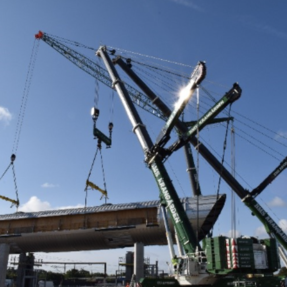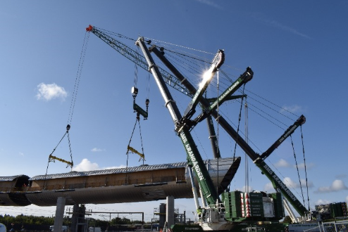 Sektionerne vejede mellem 122 og 170 ton, med længder fra 32 til 47 meter, en bredde på 9,8 meter og en højde på 6,6 meter. Til opgaven blev der anvendt to LTM1750-9.1 og én LTM1500.