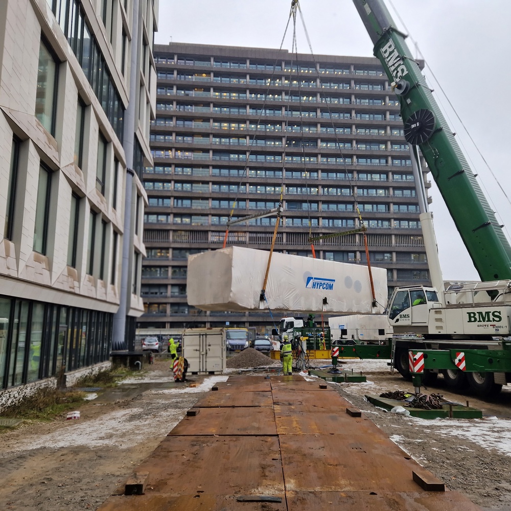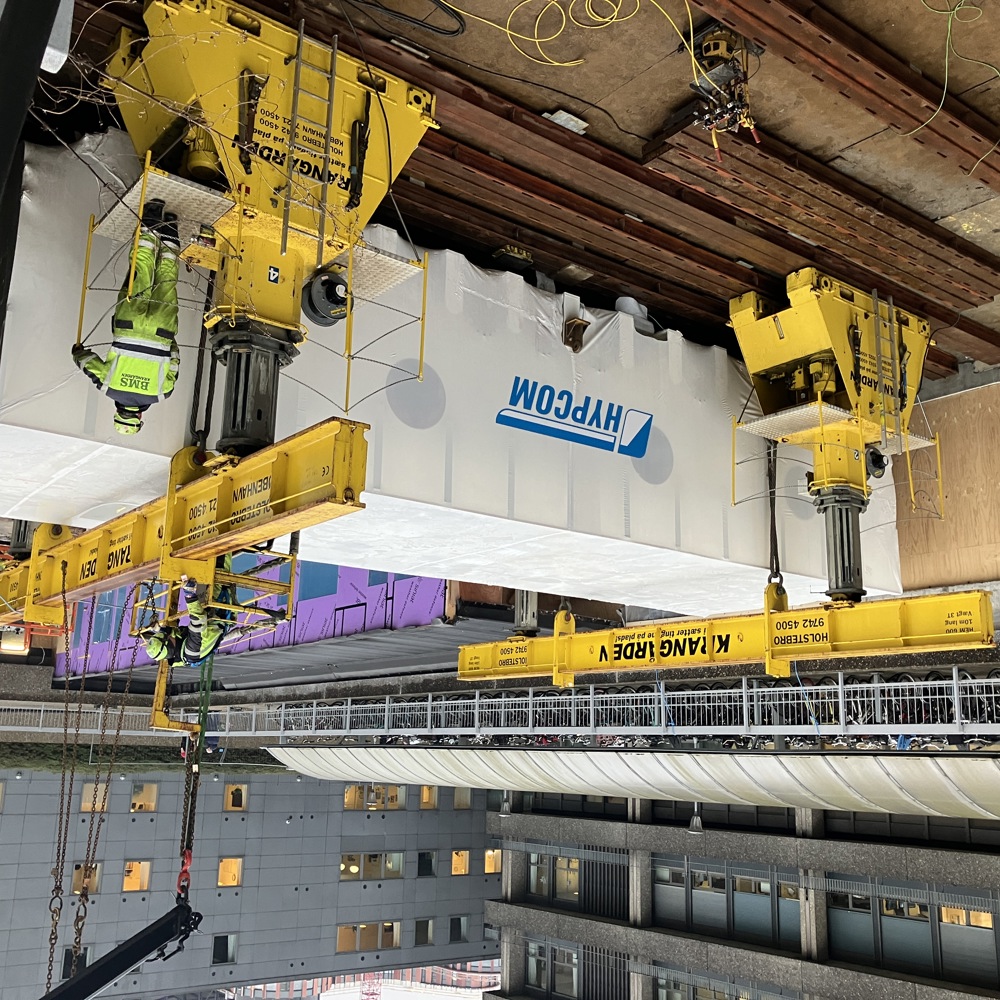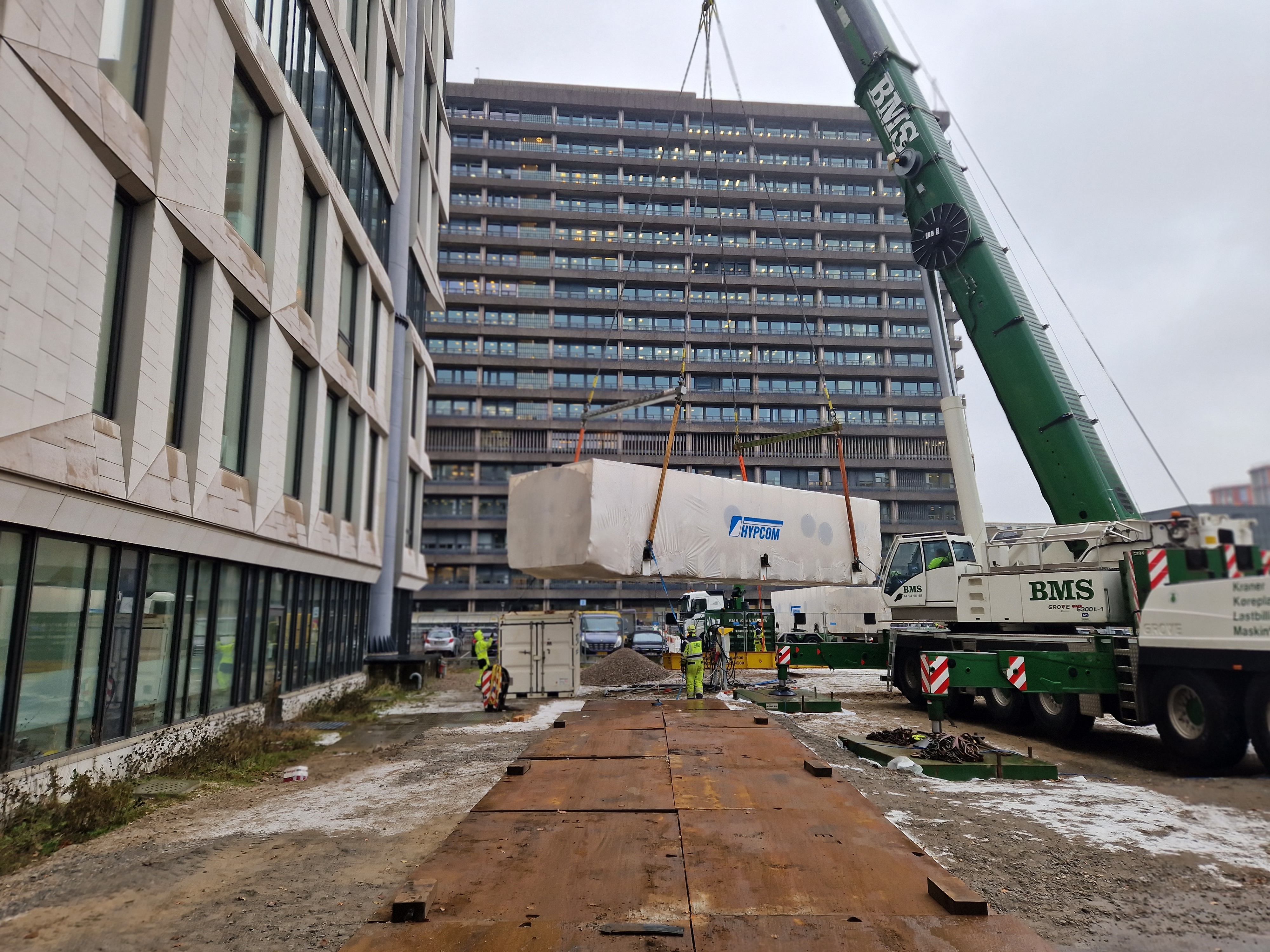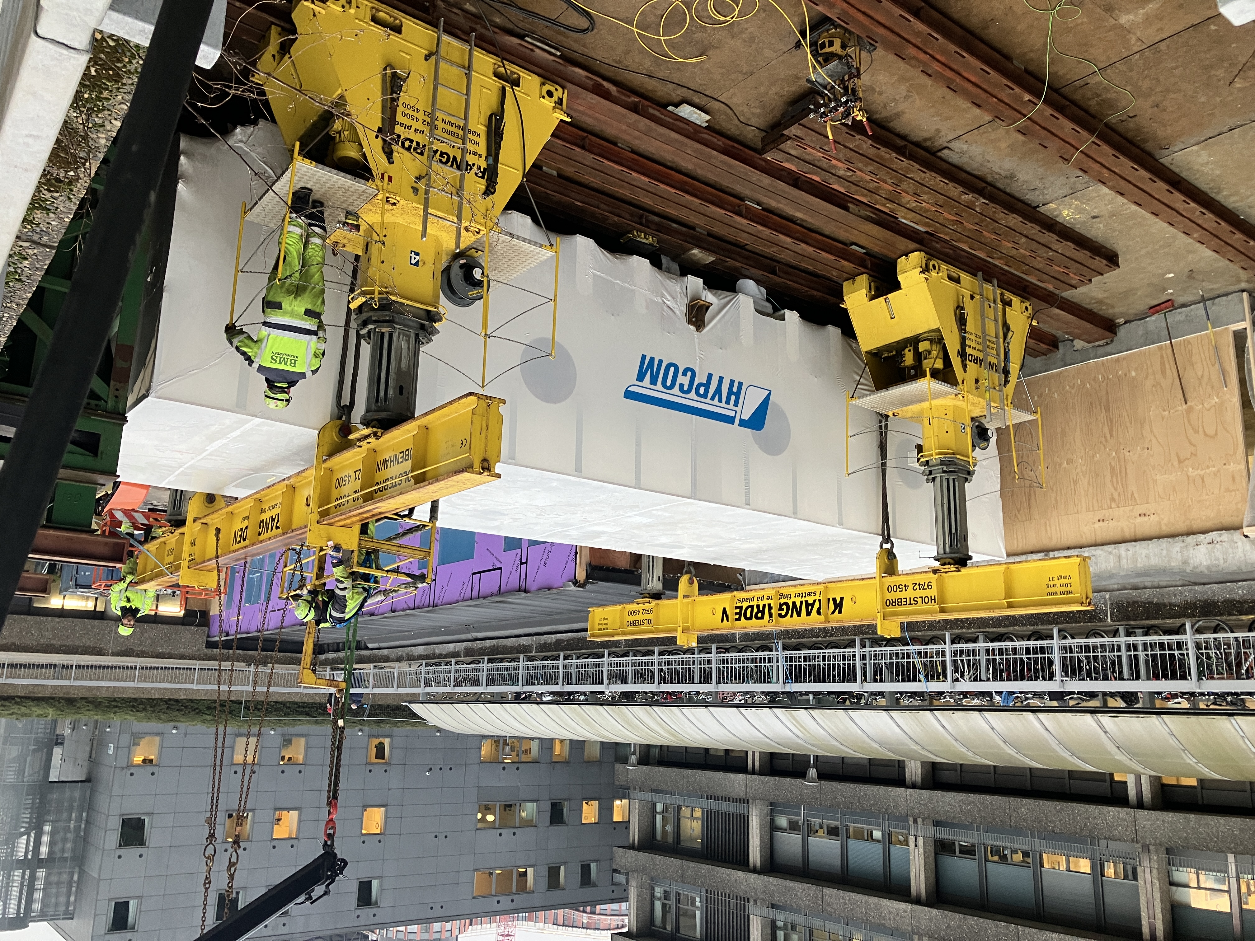 På grund af trykkammernes dimensioner på 13 x 4 meter og en samlet vægt på omkring 130 ton (det største af dem vejede 72 ton), måtte BMS udvikle en unik løsning: en kombination af løft, skub og rigging ved hjælp af en 300-tons mobilkran, 80 meter lange skinnespor, støttetårne og 1.000-tons hydrauliktårne.