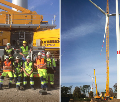 Når mobilkran og lastbilkran samarbejder om mastehejs