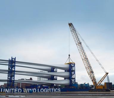 Der blev assisteret med kraner og lifte på Esbjerg Havn til transport og installation af store turbiner på offshore skibet WIND PEAK.