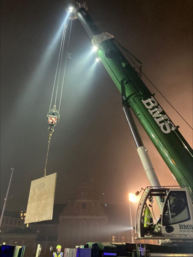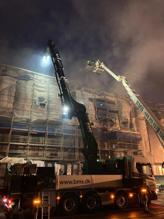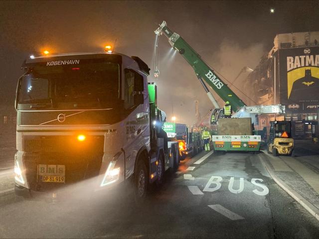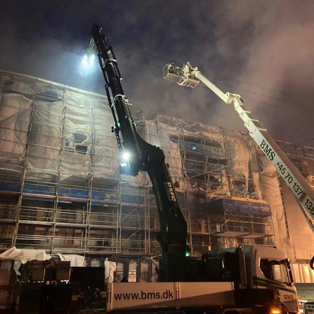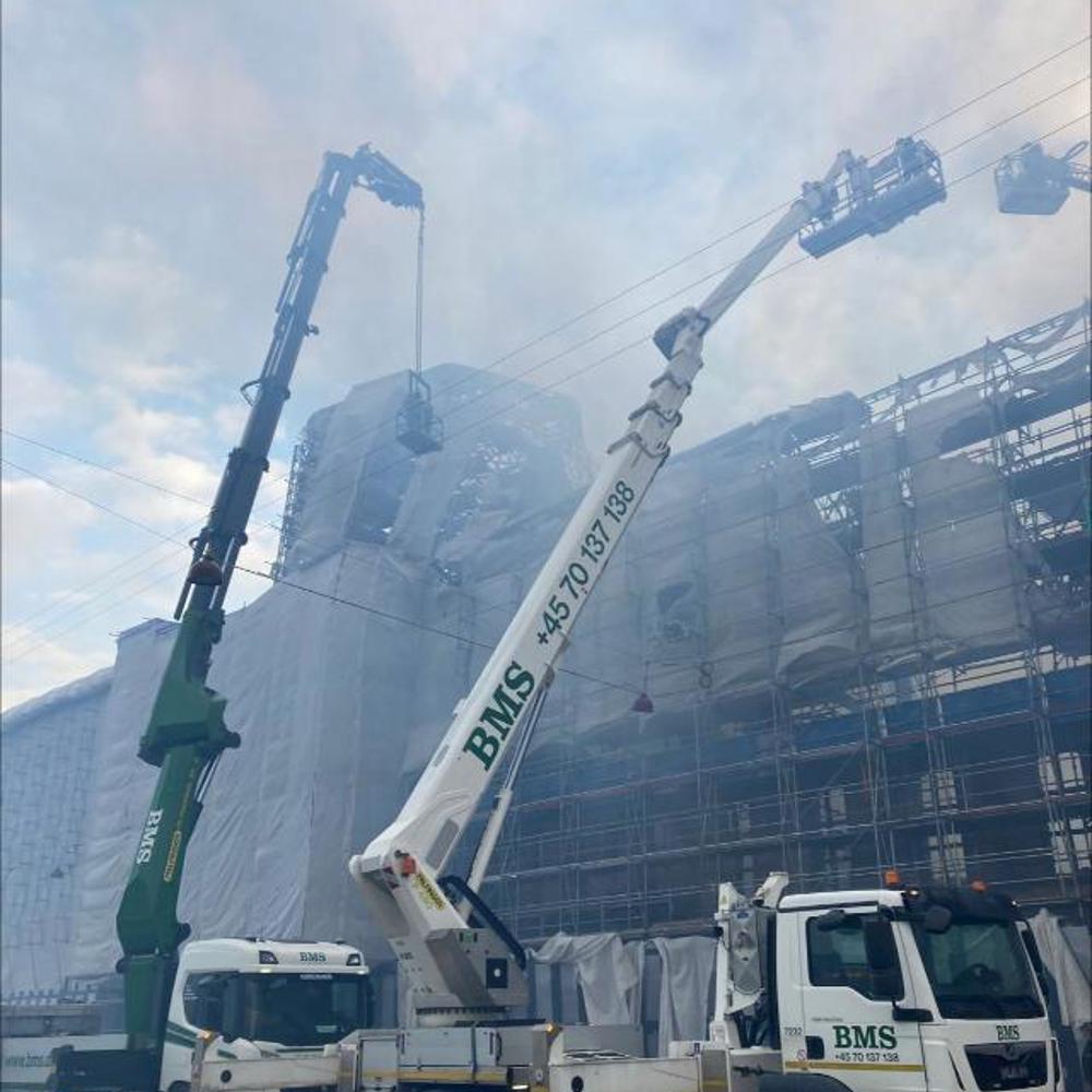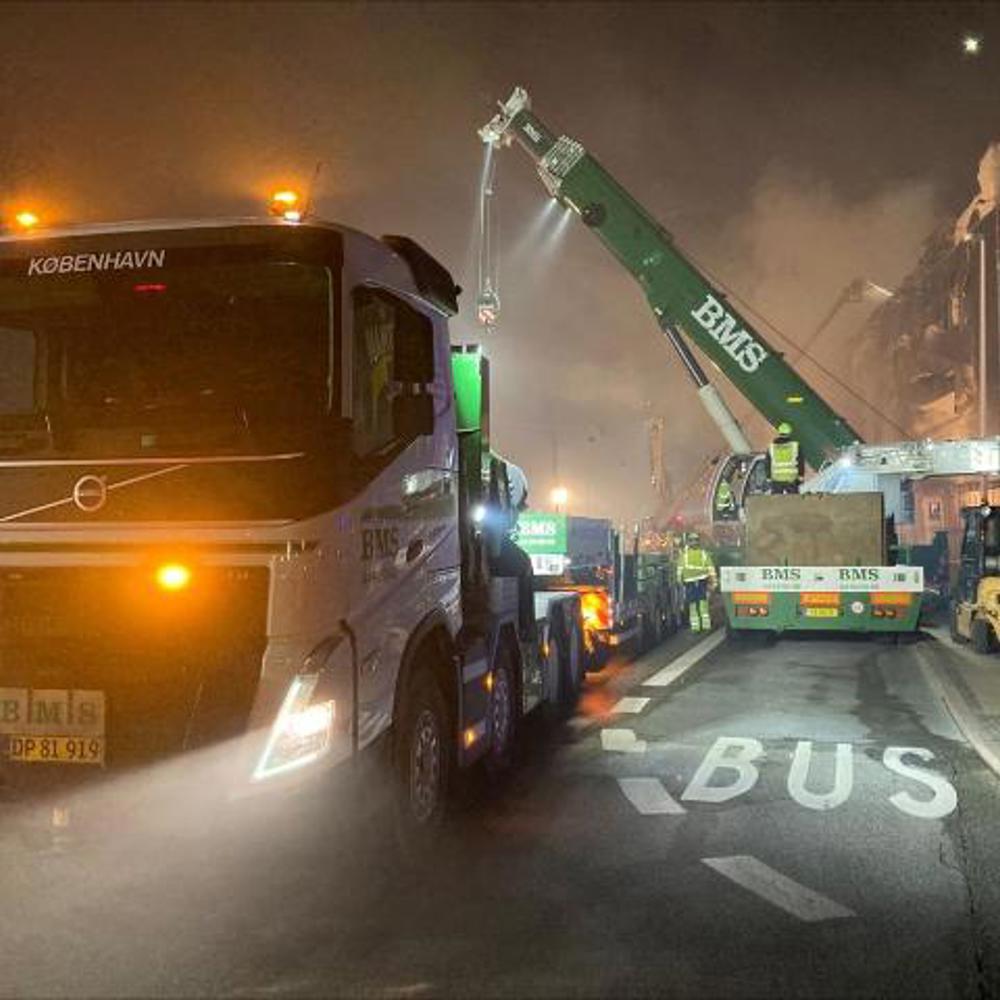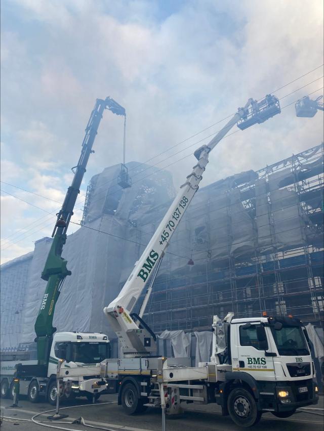I timerne efter ilden havde fået fat i Børsen i København blev BMS´s interne beredskab aktiveret. Dagen og natten igennem har vi bistået med store kranbiler med grab, lastbillifte, anhuggere og supervisore.