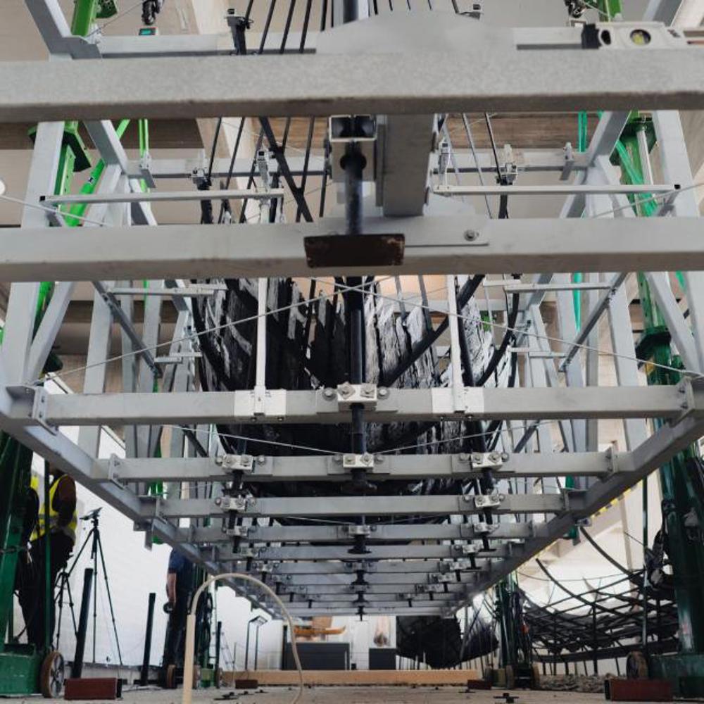 For med et specialkonstrueret bur, lavet ud fra 3D-scanninger af skibene – og et forsigtigt prøveløft - har vi bevist, at både løft og flytning kan lade sig gøre uden at beskadige vores uerstattelige kulturarv - de 5 smukke vikingeskibe.