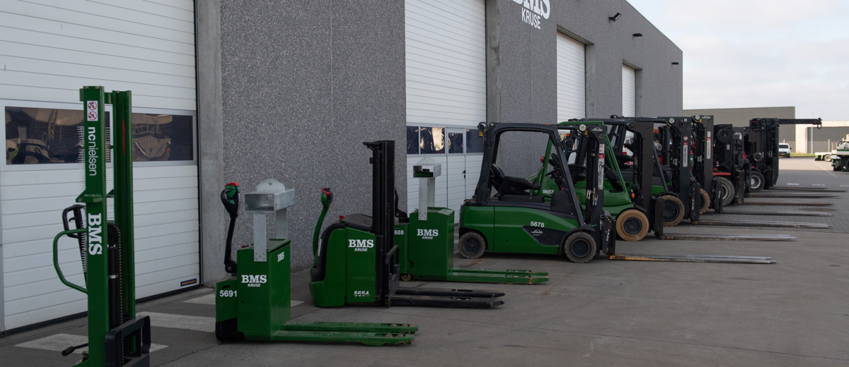 • Forklifts: BMS has Scandinavia's largest fleet of purpose-built forklifts. We offer everything from all-terrain telehandlers to indoor electric forklifts with lifting capacities up to 27 tons, designed for working in confined spaces. Many of our trucks can be fitted with options such as reversible forks and hydraulic crane arms for greater flexibility.
